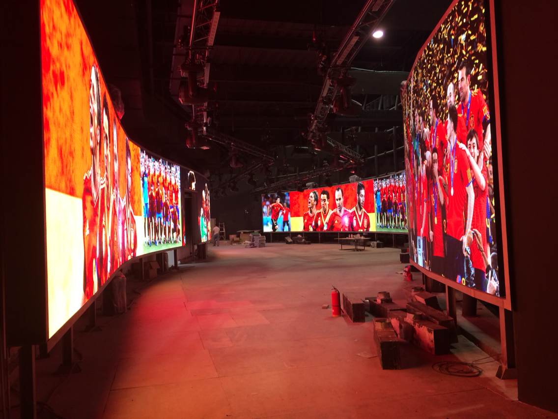 上海浦東西班牙展館P5室內(nèi)全彩LED顯示屏由智彩科技定制、安裝